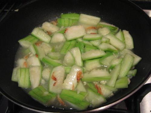 5. 炒面瓜:锅中留少许油,放入面瓜片,中火翻炒至面瓜片边缘微微焦黄。